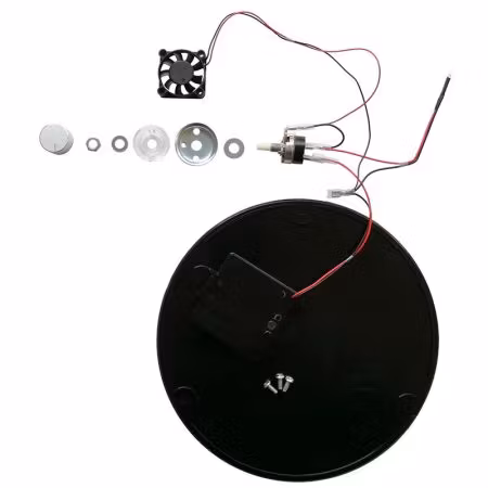 Innehåller bottenplatta, fläkt och on/off-switch med LED-diod.